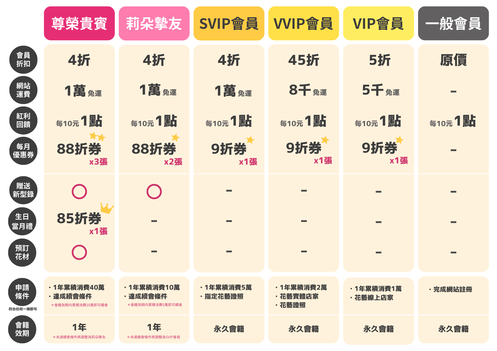 A3:可以喔!只要能夠提供「網站/粉絲頁」等資訊,證明有從事花藝相關經營,即符合VIP會員的申請資格。