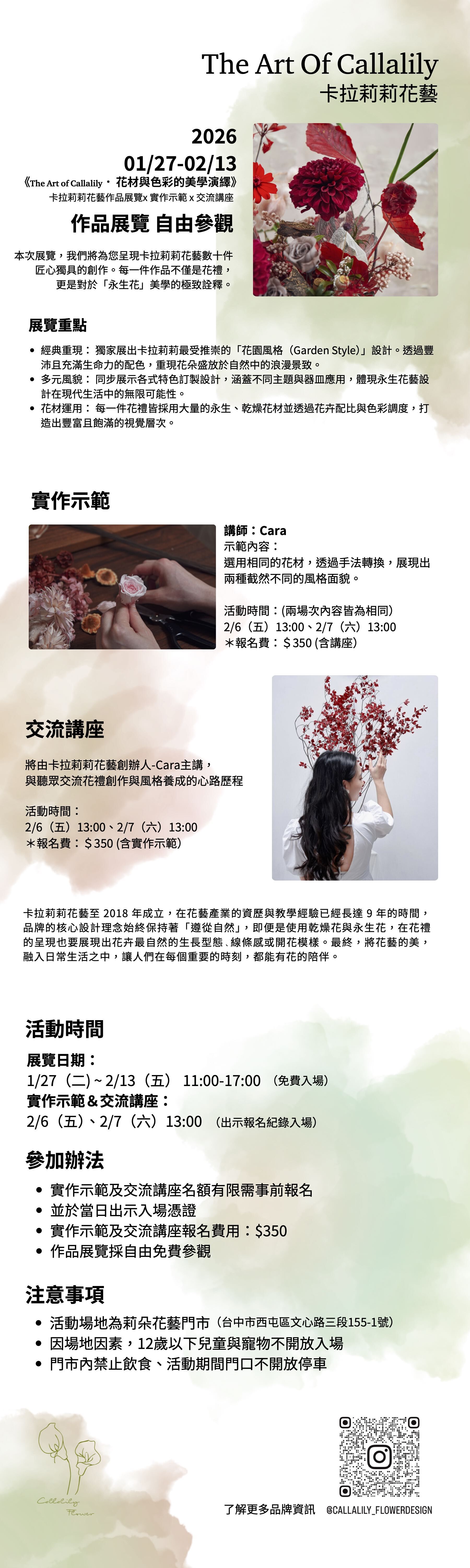 《 The Art Of Callalily・花材與色彩的美學演繹 》