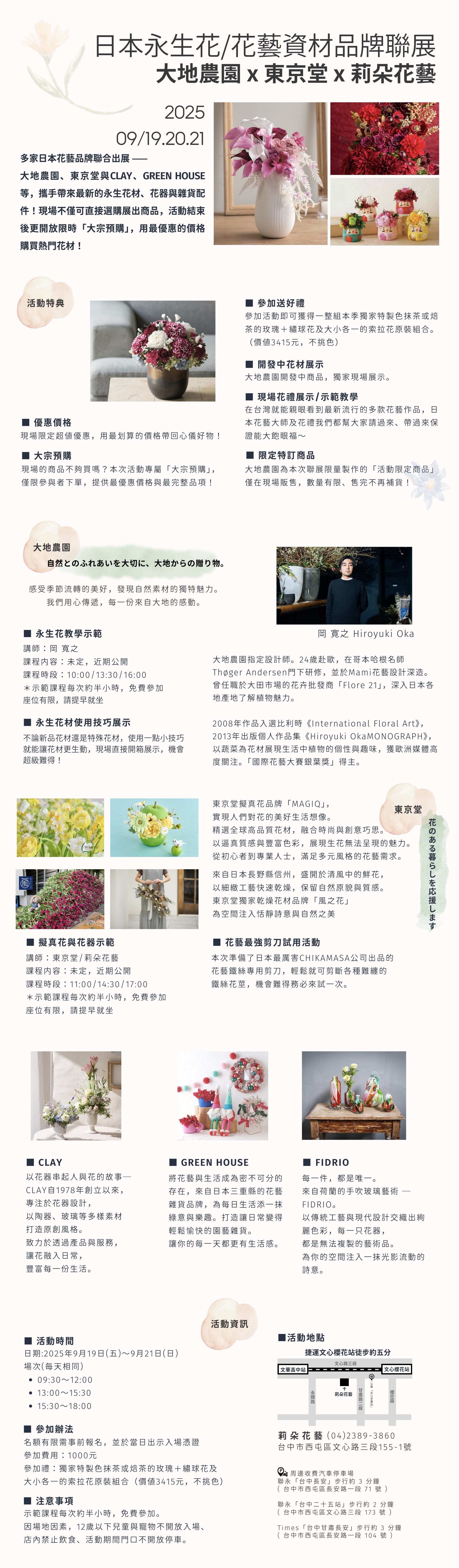 莉朵花藝邀請日本知名花藝品牌,聯手呈現最新永生花材、花器與雜貨配件。